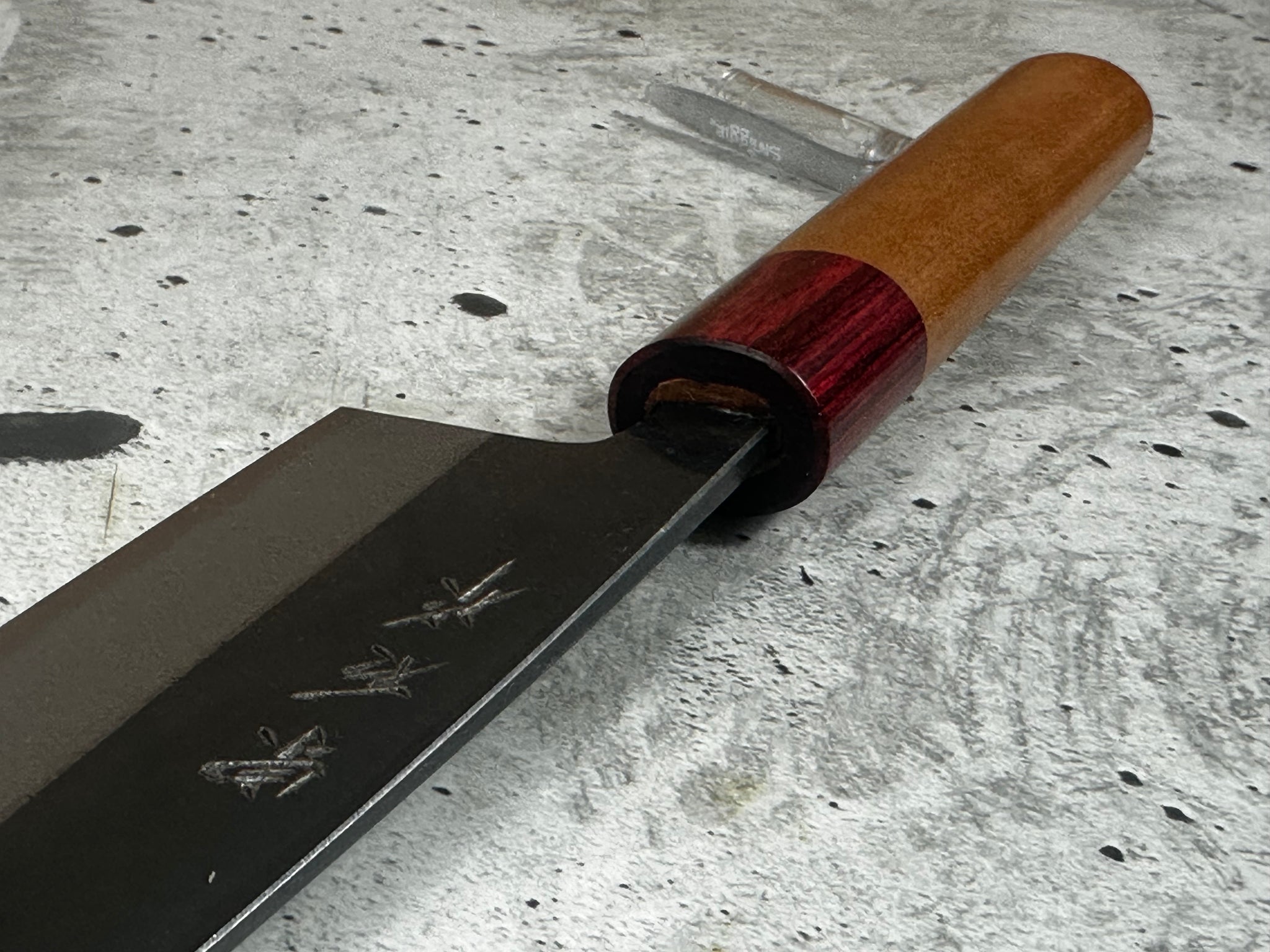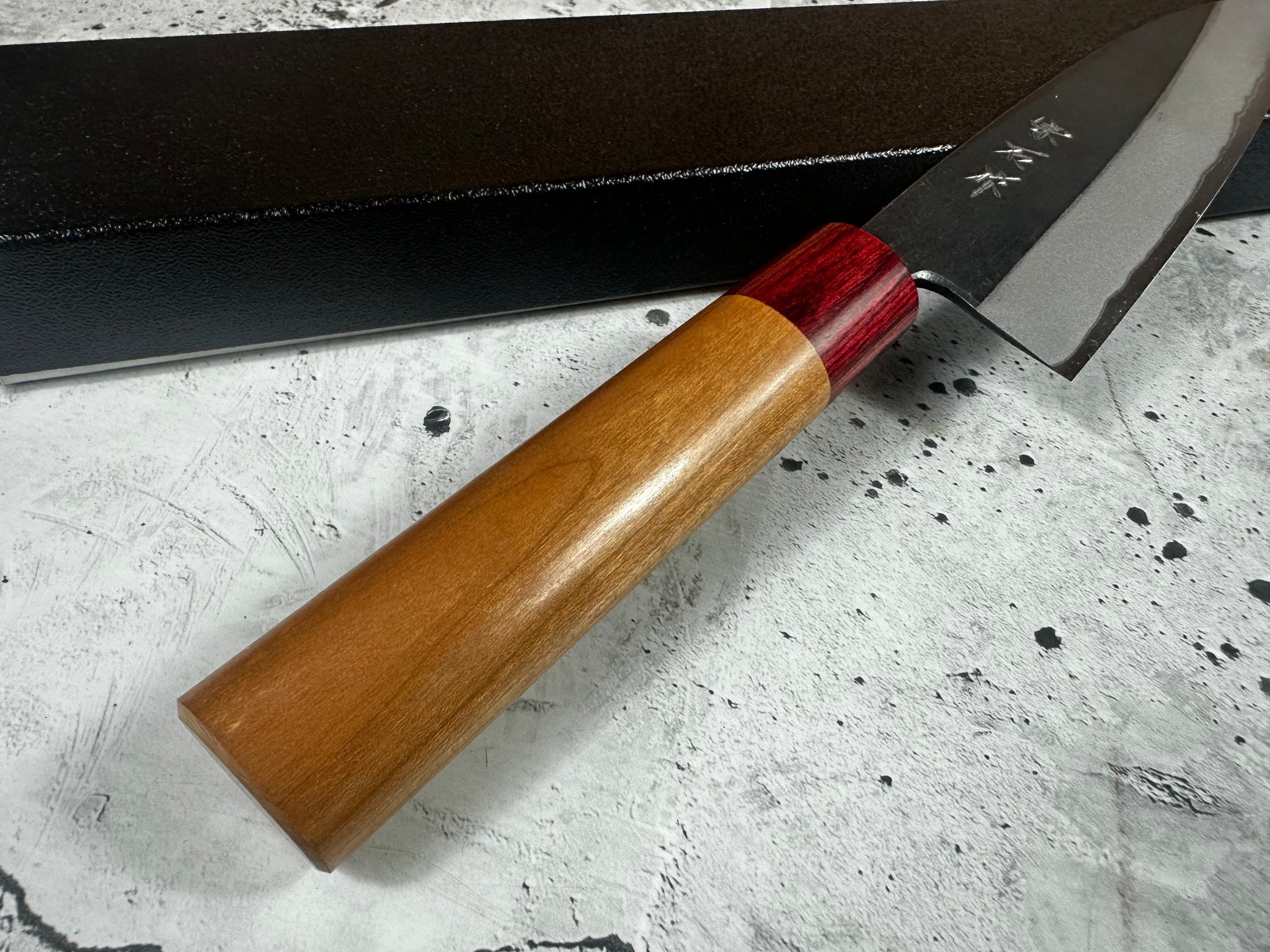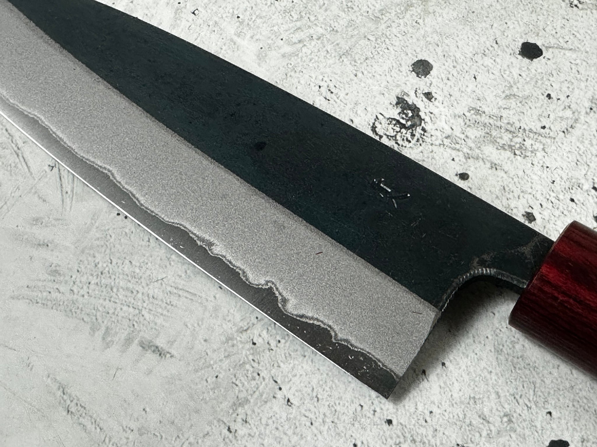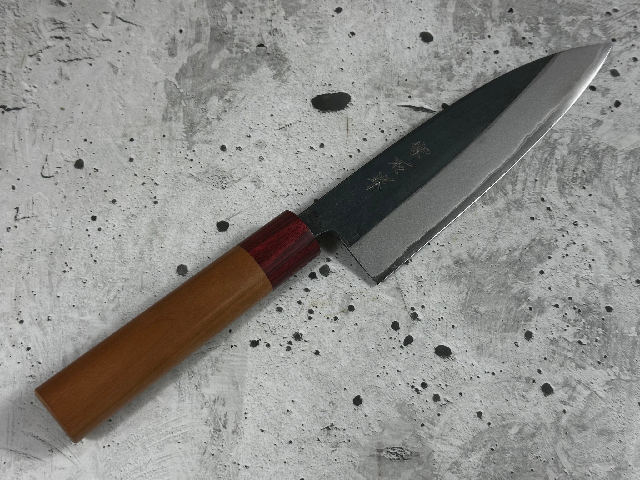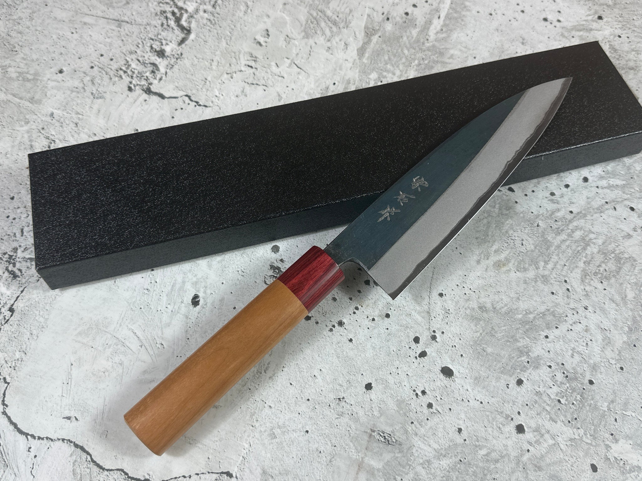 • Steel type: core steel: Japanese Aogami # 2 steel "Blue paper steel" (not stainless) with 2 layers of iRon steel with black Kurochi protective layer.