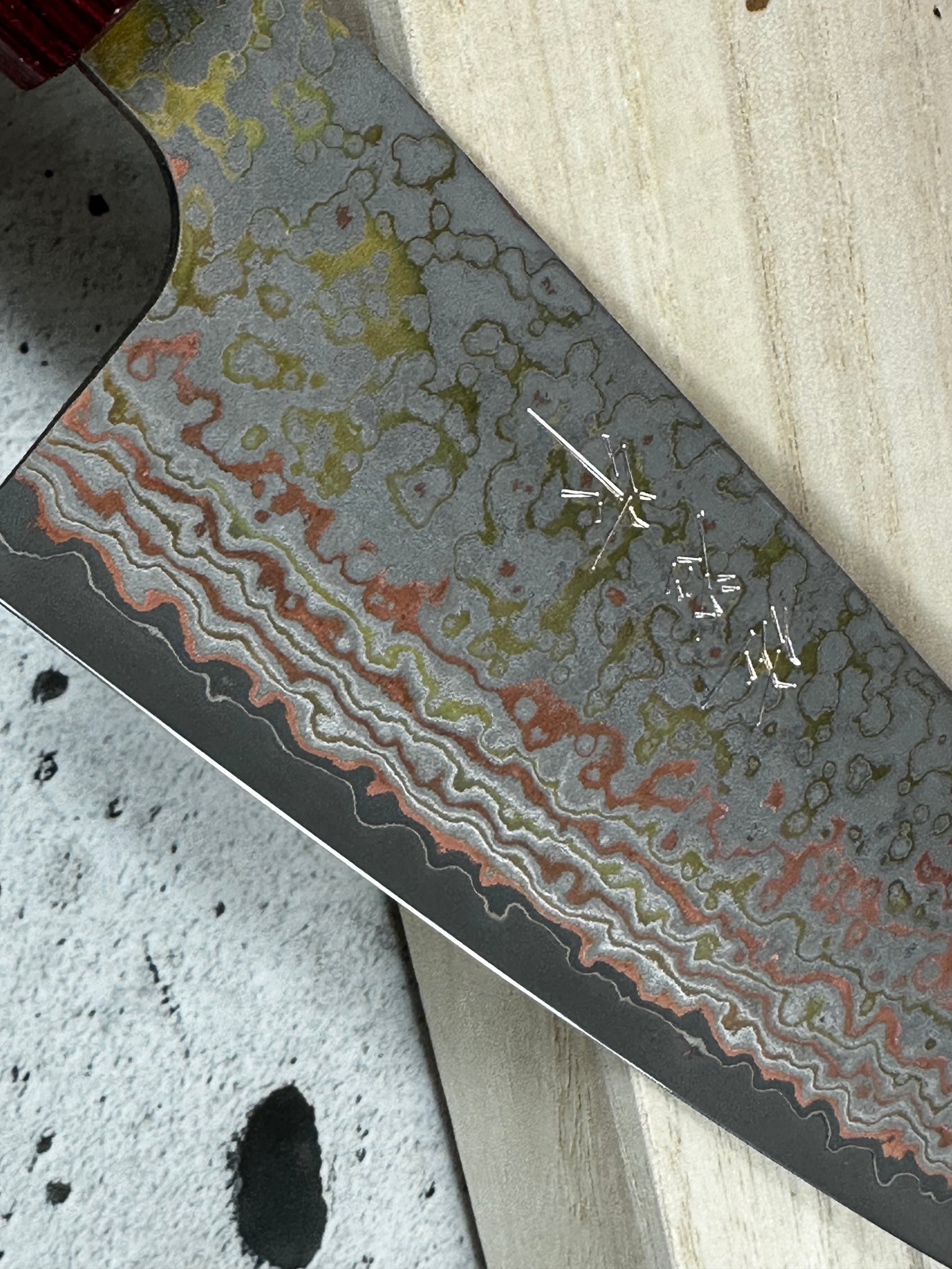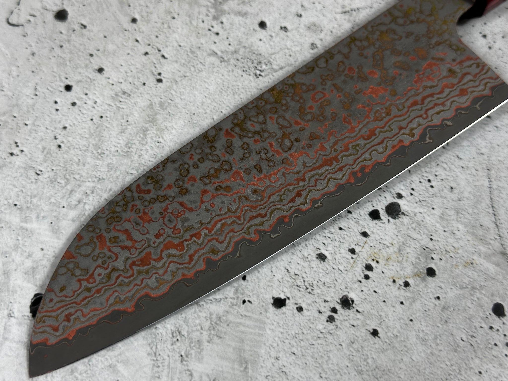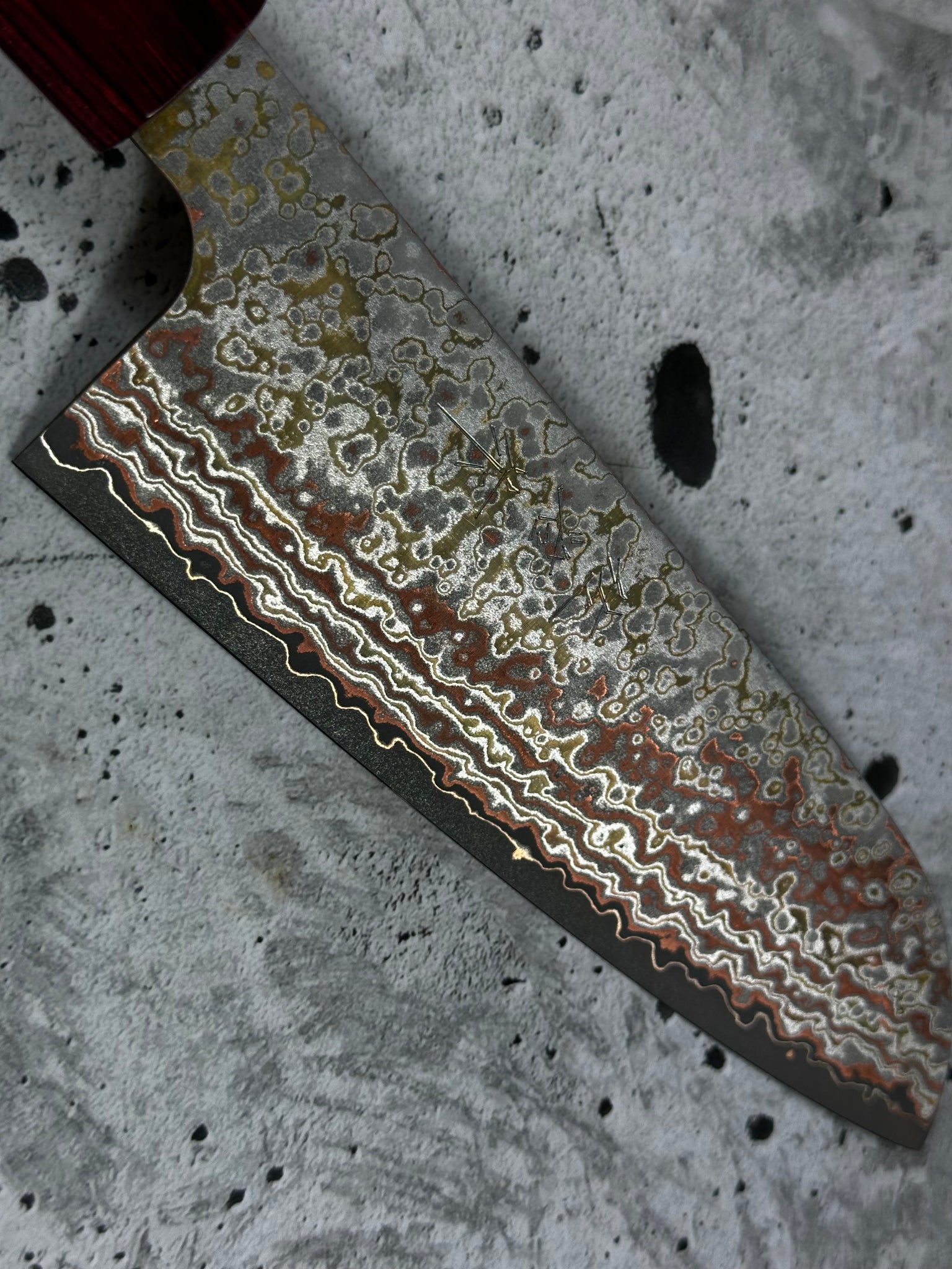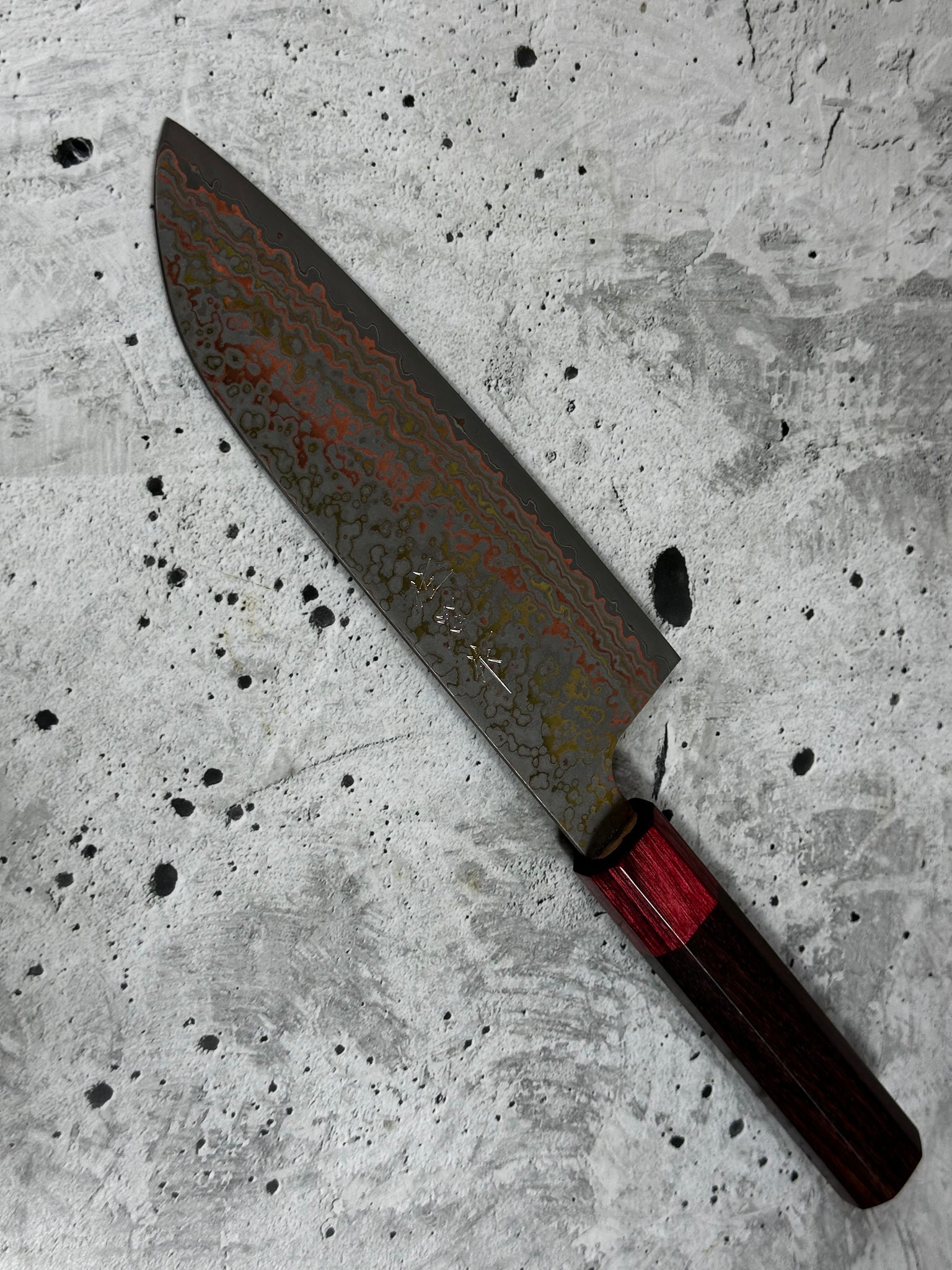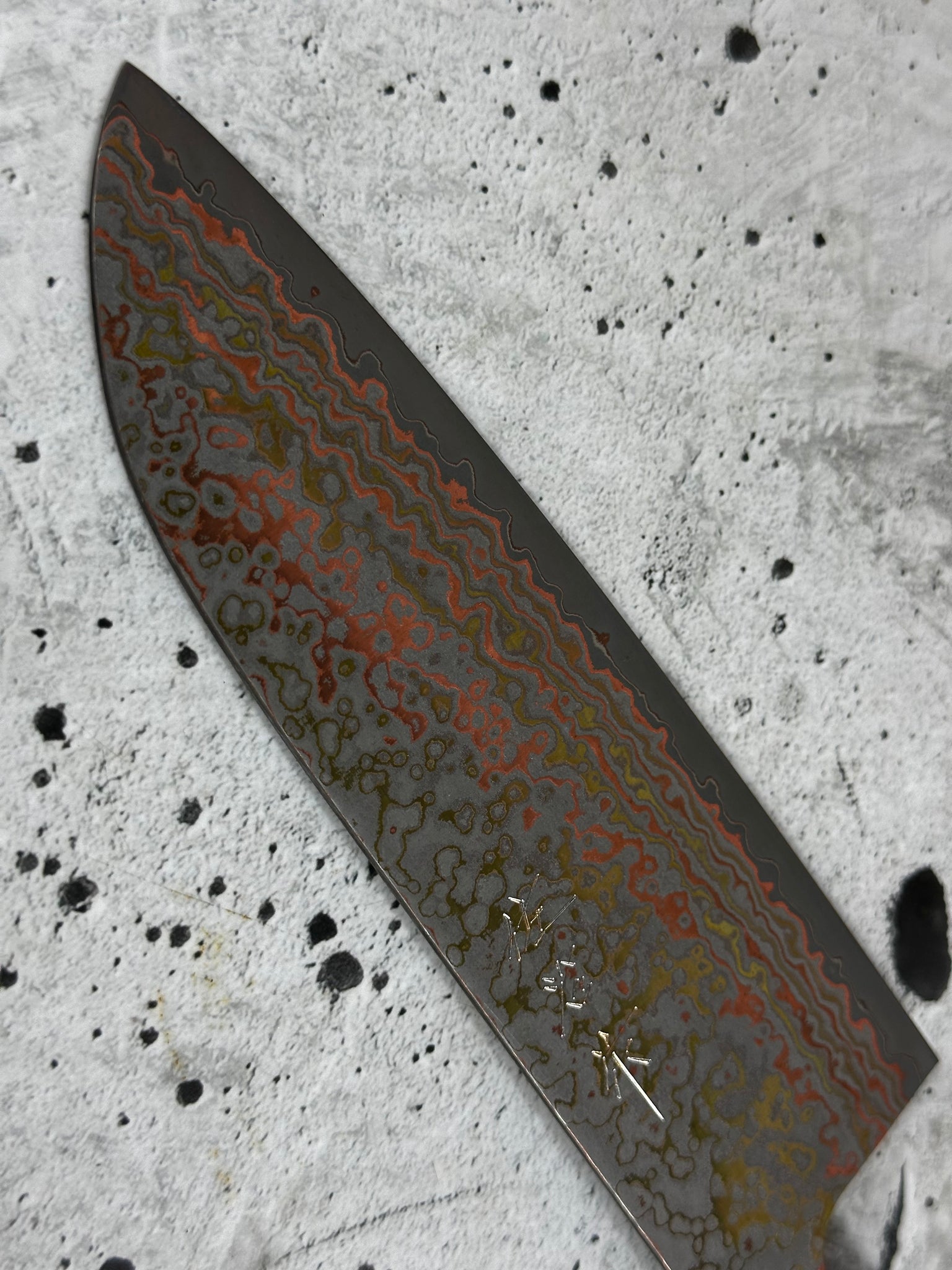 Blade Material - VG10W Core w/Stainless Black Rainbow Damascus